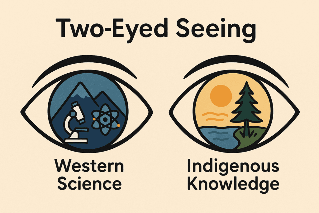 To operationalize these worldviews, we look to the Mi’kmaw concept of Etuaptmumk (Two-Eyed Seeing). This principle guides us to see with one eye the strengths of Indigenous ways of knowing, recognizing the spirit and animate nature of the land and with the other eye the strengths of Western tools, using both together for the benefit of all.